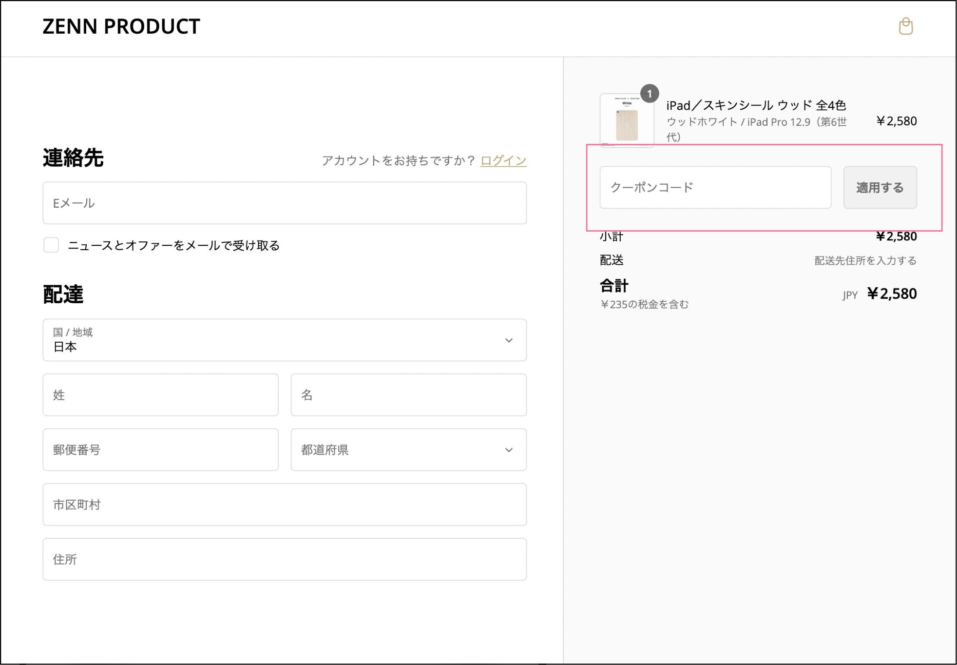 ご購入時にクーポンコードを入力していただくことでお得にお買い物がお楽しみいただけます。