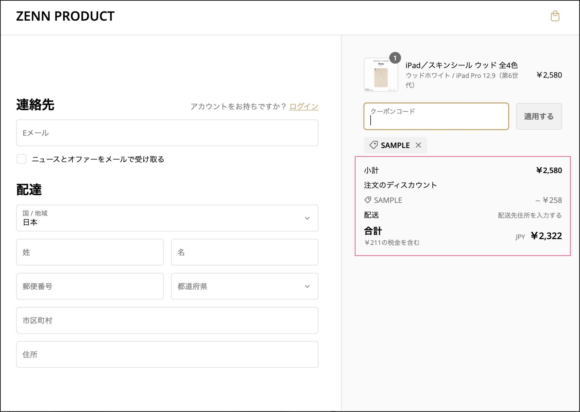 ご注文内容確認画面にて、クーポンコードが反映されていることを必ずご確認下さい。